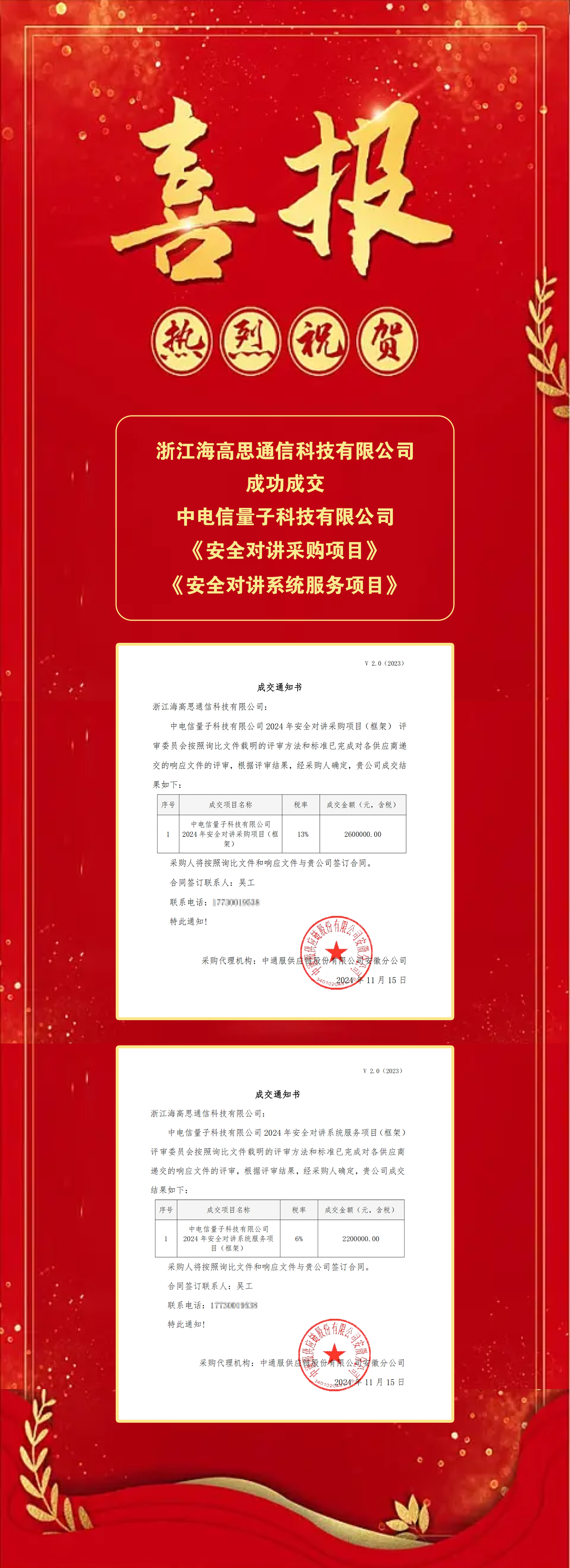 近日,我司成功中標(biāo)中電信量子科技有限公司2024年安全對講采購項目(框架)和2024年安全對講系統(tǒng)服務(wù)項目(框架),并成功成交。此次成交,是對公司技術(shù)實力和服務(wù)水平的肯定,公司一直致力于為客戶提供優(yōu)質(zhì)的對講產(chǎn)品、平臺和系統(tǒng)解決方案,緊緊圍繞消防、公安、交警、鐵路、電力、城市管理、物流等行業(yè),并將研發(fā)技術(shù)創(chuàng)新方向深耕于這幾大行業(yè),在技術(shù)領(lǐng)域投入了大量的資源和精力,取得了一系列重要成果。在服務(wù)方面,公司始終堅持“量身定制”的服務(wù)宗旨,為客戶提供全方位的服務(wù),贏得了客戶的信任和支持。