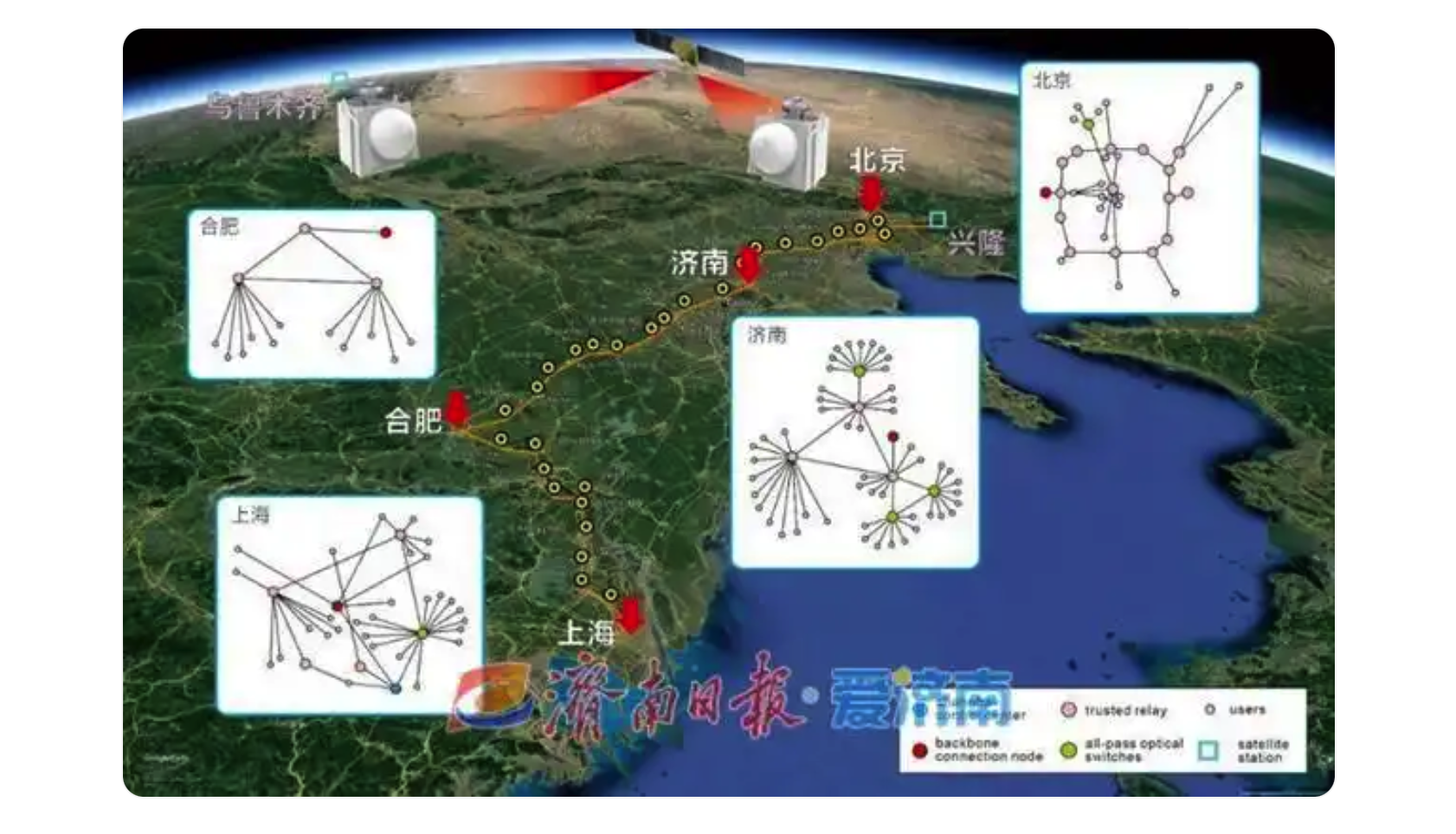 量子通信方面,濟(jì)南是量子保密通信“京滬干線”的重要節(jié)點(diǎn)城市,建設(shè)全球首套小型化量子衛(wèi)星地面站,串聯(lián)“墨子號(hào)”“京滬干線”“濟(jì)南一號(hào)”等重要基礎(chǔ)設(shè)施;率先實(shí)現(xiàn)電子政務(wù)外網(wǎng)認(rèn)證體系量子密碼增強(qiáng)認(rèn)證,率先完成國(guó)家、省、市、區(qū)、街道五級(jí)電子政務(wù)外網(wǎng)與量子通信網(wǎng)的跨網(wǎng)通信。基于量子通信技術(shù)的高等級(jí)安全通信系統(tǒng)多次為國(guó)家級(jí)重大活動(dòng)提供量子安全通信保障。